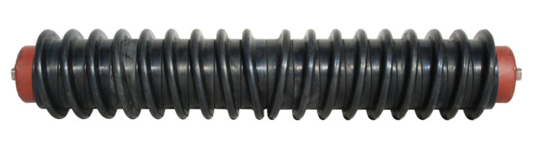 Spriralringe werden auf Standard Tragrollen aufgezogen zur Reinigung von Fördergurten eingesetzt. Die Spiralringe sind von der Mitte der Tragrolle ausgehend in eine rechte und eine linke Richtung aufgeteilt. Zur einfachen Montage ist eine Markierung auf dem Ring angebracht. Die mit Reinigungsringen komplett bestückte Tragrolle wird im Untertrum montiert. Beim Drehen der Tragrolle befördern die Spiralringe durch taumelde Bewegung den Schmutz von der Gurtmitte nach außen.